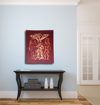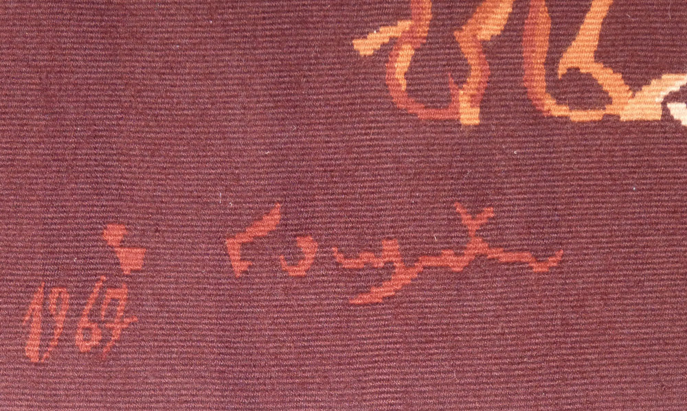 フジタがタピスリー用に描いた下絵はわずか数枚で、その全てがビエーヴルのピエール・ドゥ・タルタの下で織られています。本作品は、他のタピスリー作品とは異なり、ほぼ単色で、絵画のしなやかな筆致とは程遠い様式化がなされるなど、彼の絵画作品とは一線を画した作風となっています。聖書の題材については、彼がカトリックに改宗したばかりであることを表しています。