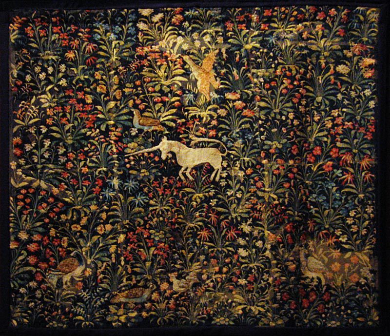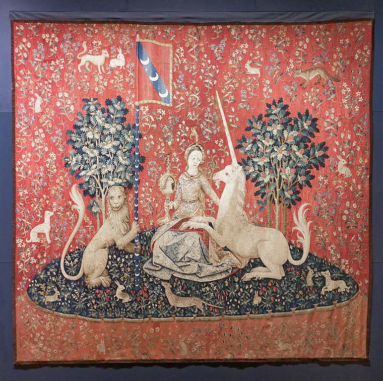 19世紀、ロマン主義の時代に中世への復興運動が盛んになっていた頃、フランスのクルーズ県にて、あの有名な「貴婦人と一角獣」のタピスリーが発見されます(現パリ・クリュニー美術館蔵)。